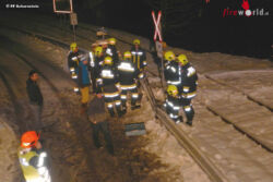 SCHARNSTEIN (OÖ): Am Dienstagabend, 27.01.2015 wurde die Feuerwehr Scharnstein um 19:11 Uhr von der Landeswarnzentrale zu einem „Technischen Einsatz klein“ – „Leitscheine ragt in Bahngleis“ in die Bahnhofstraße alarmiert.