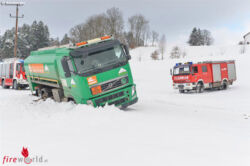 Ein Tanklastwagen mit ca. 8.000 Liter Diesel rutschte in der Ortschaft Witzelsberg in den Straßengraben und war durch den weichen Untergrund gefährdet, auf die Beifahrerseite zu kippen. Mittels zwei Seilwinden konnte der Lkw zuerst gesichert und folglich wieder zurück auf die Straße gebracht werden.