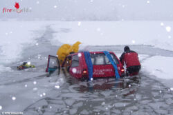 Die Einbruchstelle lag in der Mitte des Sees. Feuerwehrtaucher konnten das Fahrzeug in ca. fünf Metern unter Wasser sichten und gegen weiteres Abtreiben sichern. Sogenannte Hebeballons wurden durch die Taucher am Fahrzeug angebracht, diese mit Luft gefüllt und das Fahrzeug so an die Oberfläche verbracht.