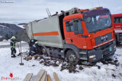 WEISTRACH (NÖ): Am Vormittag des 29.01.2015 wurde die Freiw. Feuerwehr Weistrach von der örtlich zuständigen FF Goldberg zur Unterstützung bei einer Lkw-Bergung alarmiert. Grund dafür war die Bergung eines eingesunkenen Müllwagens.