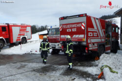 Die FF Weistrach rückte daraufhin mit zwei Fahrzeugen aus. Die von der Einsatzleitung angeforderten Pfosten und Unterlagsmaterialien wurden aus der Katastrophenschutzhalle der FF Weistrach mitgebracht.