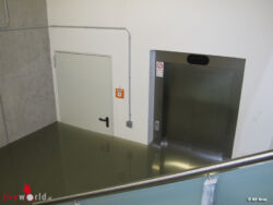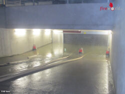 Die Austrittsstelle befindet sich direkt bei der Tiefgarageneinfahrt eines Wohnbauprojektes mit 122 Wohneinheiten. Das Wasser floss direkt über die Abfahrtsrampe in die Tiefgarage und die Kellerabteile und überflutete diese in einer Höhe von ca. 100 cm auf einer Fläche von rund 5.000 m². Zu Beginn des Feuerwehreinsatzes befanden sich 5.000 Kubikmeter Wasser im Kellergeschoss (Tiefgarage und Kellerabteile). Die Tiefgarage bietet Platz für insgesamt 135 Autos.