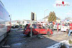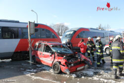 Ein Fahrzeuglenker fuhr mit seinem Fahrzeug aus unbekannter Ursache trotz geschlossener Schrankenanlage in den Bahnübergang in der Klagenfurter Straße ein und wurde von der Lok des herannahenden Personenzuges frontal erfasst. Wie durch ein Wunder konnte der Fahrzeuglenker nach dem Zusammenstoß sein Fahrzeug noch selbstständig verlassen und wurde nach der Erstversorgung vom Roten Kreuz ins Krankenhaus Wolfsberg eingeliefert. Das Unfallfahrzeug wurde anschließend von der Feuerwehr Wolfsberg geborgen und die ausgelaufenen Betriebsmittel gebunden. Nach dem Abschluss der Arbeiten konnten die Einsatzkräfte nach ca. einer Stunde wieder ins Rüsthaus einrücken.