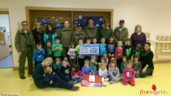 Zusammen mit der Spende übergab Kommandant Wallner mit seinen Kameraden auch noch Bastelvorlagen für Feuerwehrautos und Süßigkeiten an die Kindergartenkinder, die sich riesig darüber freuten.