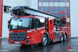Aufgebaut ist die Teleskopmastbühne auf einem MB 2635 L Fahrgestell mit 354 PS und einem Radstand von 3.900 mm. Der 26 Tonner mit 32 m Leiterlänge verfügt auch über eine N35 Pumpenanlage sowie einem 600 kg Rettungskorb. Die Abstützbreite beträgt 5,93 m.