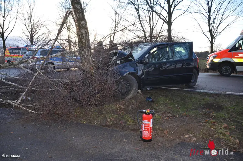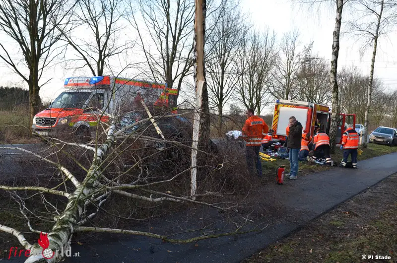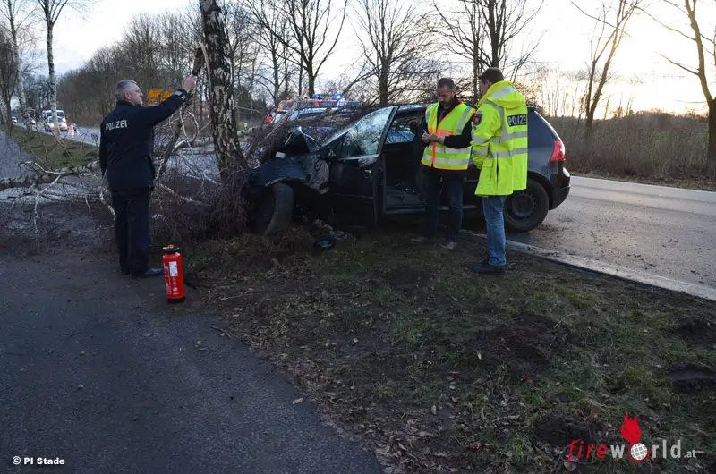 Der Golffahrer war mit seinem Auto aus Richtung Stade kommend in Richtung Helmste unterwegs und auf gerader Strecke nach links auf die Gegenfahrbahn geraten. Dort touchierte er einen entgegenkommenden VW-Touran einer 50-jährigen Fahrerin aus Stade leicht. Anschließend verlor er offenbar die Kontrolle über sein Fahrzeug, schleuderte über die Gegenfahrbahn und prallte beim km 7,0 frontal gegen eine Birke im linken Seitenraum. Durch die Wucht des Aufpralls brach die Baumkrone ab und stürzte zu Boden.
