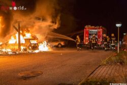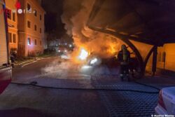 Vermutlich durch auslaufenden Treibstoff und die enorme Hitzeentwicklung unter dem Carport-Dach wurden zwei weitere Fahrzeuge in Brand gesteckt. Nun wurden weitere Anrainer auf das Feuer aufmerksam und wählten den Notruf 122. Aufgrund der erneuten Meldungen mit dieser Lageänderung entschied der Disponent gegen 3:36 Uhr auf Alarmstufe 3 zu erhöhen. Auch die Feuerwachen Rehberg und Egelsee wurden zum Einsatz alarmiert.