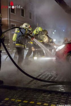 Als die Einsatzkräfte wenige Minuten später am Einsatzort eintrafen, begann ein Atemschutztrupp sofort mit der Brandbekämpfung. Die nachfolgenden Einsatzkräfte stellten weitere Atemschutztrupps und es wurden weitere Löschleitungen für einen effektiven Löschangriff aufgebaut. Parallel dazu sicherten die Einsatzkräfte die Wasserversorgung von umliegenden Hydranten. Durch das schnelle Eingreifen der Feuerwehr Krems wurde der Brand rasch unter Kontrolle gebracht. Mithilfe der Wärmebildkamera konnten Glutnester in den Fahrzeugen aufgespürt und danach gezielt abgelöscht werden.