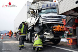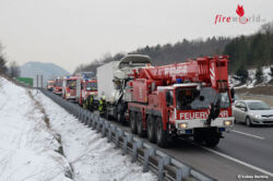 GAADEN (NÖ): Ein Auffahrunfall zweier Lastkraftwagen auf der Wiener Außenringautobahn führte am Vormittag des 5. Februar 2015 zu einem mehrstündigen Feuerwehreinsatz.