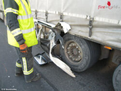 BRUCK/LEITHA (NÖ): Am 2. Februar 2015 wurde die Freiwillige Feuerwehr Bruck/Leitha um 13.20 Uhr mittels Sirene, Pager und Blaulicht-SMS (T2 – Autobahn-Menschenrettung) zu einem schweren Verkehrsunfall auf die Ostautobahn A4 Richtungsfahrbahn Osten ca. km 37,5 gerufen.