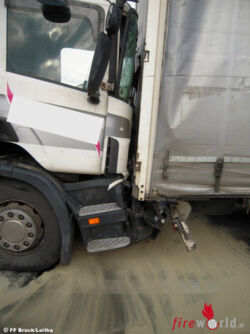 Die Entfernung des Sattelkraftfahrzeuges konnte nach Bewerkstelligung einiger kleinen Arbeiten durchgeführt werden, wogegen sich die Bergung des Lkw, gemeinsam mit einem privaten Berge- und Abschleppunternehmen, als sehr schwierig erwies, zumal sich der Motorblock mitsamt des gesamten Antriebsstranges beim Aufprall in Richtung Heck verschoben hatte und dabei auch noch die Ölwanne gänzlich aufgerissen worden war, was zu einem massiven Einsatz von Ölbindemittel führte. Um das Auslaufen des Motoröls zu beschleunigen wurde die Ölablassschraube gelöst, um die restliche Menge ablaufen zu lassen.