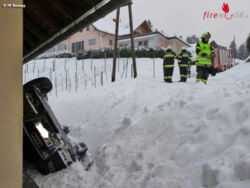 ROSEGG (KTN): Sirenenalarm kurz nach 16:00 Uhr des 5. Februar 2015 für die Freiwillige Feuerwehr Rosegg im Bezirk Villach-Land: Ein Auto-Lenker war mit seinem Fahrzeug von der Lindner Straße in Bergl/Rosegg von der schneeglatten Fahrbahn abgekommen.