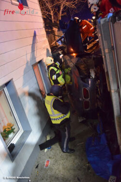 Nö: Junger Lenker bei Zusammenprall mit Hausmauer im Fahrzeug eingeklemmt