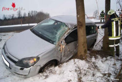 Der Wagen rutschte von der Straße und prallte seitlich gegen einen Baum. Ihre 48-jährige Mutter, die am Beifahrersitz saß, blieb unverletzt. Die 28-Jährige und ihre Kinder, zwei Mädchen im Alter von 4 und 5 Jahren wurden mit der Rettung ins LKH Steyr eingeliefert. Der Pkw wurde schwer beschädigt. Die Feuerwehren Aschach und Saass waren zwei Stunden im Einsatz.