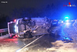 Am Freitagabend gegen 1745 Uhr fuhr ein 27-jähriger Autolenker von der Martinsbrugg her in Richtung Eggersriet. Höhe Unterebni geriet sein Fahrzeug in einer Rechtskurve ins Rutschen. Nach einer Lenkkorrektur brach das Heck des Fahrzeuges aus und kollidierte mit der rechtsseitigen Steinmauer. Durch den Aufprall kippte das Fahrzeug auf die linke Seite und rutschte über die Straßenmitte hinaus in einen entgegenkommenden Personenwagen.