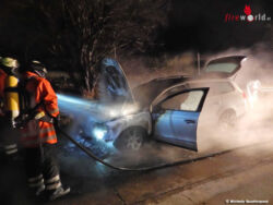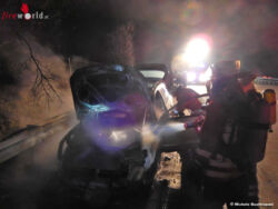Das offensichtlich im Motorraum des Pkw ausgebrochene Feuer konnte von unter umluftunabhängigen Atemschutzgeräten vorgehenden Einsatzkräften unter Zuhilfenahme der Schnellangriffseinrichtung des Tanklöschfahrzeuges umgehend gelöscht werden.