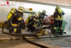 Unter Umluft unabhängigen Atemschutz und unter Vornahme eine C-Schnellangriffsleitung wurde der Brand binnen Sekunden niedergeschlagen. Um den Inhalt komplett ablöschen zu können wurde das Altpapier mit einer Gabel zerteilt und mit einer Wärmebildkamera eine abschließende Kontrolle vorgenommen. Kurz nach Mitternacht konnte die Feuerwehr Krems wieder in die Hauptfeuerwache einrücken.