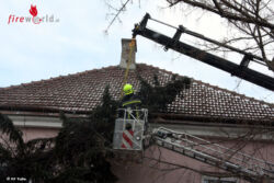 TULLN (NÖ): Am 8. Februar 2015 wurde die Feuerwehr Tulln um 13.12 Uhr mit dem Meldebild – Baum auf Dach – zu einem Sturmeinsatz alarmiert.