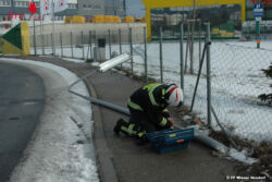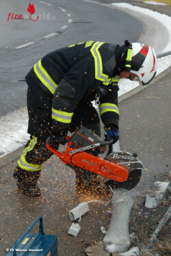 Beim letzten Einsatz des Tages musste eine nach einem Verkehrsunfall umgestürzte Straßenlaterne von der Feuerwehr gesichert werden. Zu diesem Zweck wurde die Straßenbeleuchtung zuerst abgeklemmt und im Anschluss mittels Motortrennsäge umgeschnitten. Insgesamt standen bei den Einsätzen am Sonntagvormittag 37 Mitglieder mit sieben Fahrzeugen freiwillig im Einsatz.