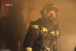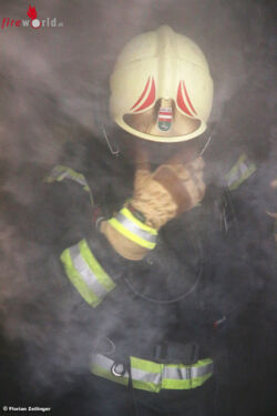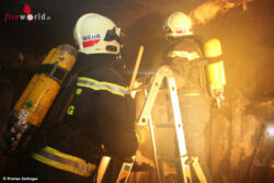 Wenige Minuten später trafen die ersten Tanklöschfahrzeuge an der Einsatzadresse ein. Nach der raschen Erkundung durch den Einsatzleiter, stand schon ein Trupp mit Umluft unabhängigen Atemschutzgeräten bereit, um mit den Löscharbeiten zu beginnen. Unter Vornahme einer C-Löschleitung und einer Wärmebildkamera begab sich der Trupp in das Gebäude. Inzwischen waren zwei weitere Atemschutztrupps, zwecks Sicherung und Ablöse, am Gelände. Auch eine zweite Löschleitung wurde aufgebaut und die Wasserversorgung der Tanklöschfahrzeuge sichergestellt.