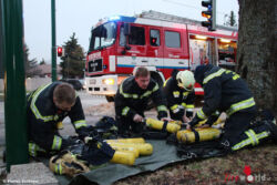 Es folgte die Anordnung des Einsatzleiters, zwischenzeitlich eine Zugangsmöglichkeit auf das Dach zu schaffen. Dafür wurden Leiterteile in Stellung gebracht und im Anschluss die Dachkonstruktion kontrolliert.