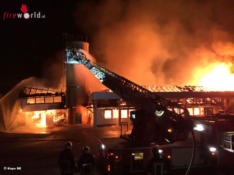 Die Meldung, wonach ein Teil einer Schreinerei in Lanzenhäusern im Weiler Höhlen in Flammen stehe, ging kurz vor 02.00 Uhr bei der Kantonspolizei Bern ein. Die umgehend mit einem Großaufgebot ausgerückten Feuerwehren Schwarzenburg, Rüschegg-Guggisberg und Köniz konnten nicht verhindern, dass sich das Feuer in der Folge auf das gesamte Gebäude ausbreitete. Ein Übergreifen auf angrenzende Gebäude und Wohnhäuser konnte jedoch verhindert werden.
