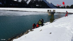 SILZ (TIROL): Mit dem Einsatzstichwort „Wasserrettung“ wurde die Feuerwehr Silz sowie die Löschgruppe Kühtai am 14. Februar 2015 um 11:54 Uhr alarmiert.Laut Meldung der Leitstelle Tirol war eine Person – eine Dame – im Stausee treibend regungslos aufgefunden worden.