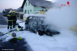 WIENER NEUSTADT (NÖ): Kein Ausschlafen für die Feuerwehr Wiener Neustadt am Faschingssonntag, den 15. Februar 2015! Ein parkender Pkw begann in der Kupelwiesergasse aus unbekannter Ursache zu brennen. Die Feuerwehr rückte an und löschte das Fahrzeug mit Löschschaum.