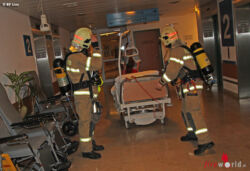 In einem Patientenzimmer war es zu einem Brand im Bettbereich eines Patienten gekommen, wobei sich dieser Verbrennungen unbestimmten Grades zugezogen hat. In der ersten Phase wurden die Fluchtwege mittels Druckbelüftung gesichert und die Stiegenhäuser kontrolliert. Parallel dazu wurde durch einen Atemschutztrupp die Brandbekämpfung durchgeführt und weitere Atemschutztrupps kontrollierten den Brandabschnitt auf Verrauchung.