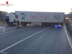 Das darunter befindliche Erdreich war noch dazu sehr aufgeweicht. Auf Grund dieser besonderen Bedingungen kam das schwere Lastfahrzeug ins Rutschen und sank gleichzeitig teilweise im weichen Boden ein. Das Gefährt konnte vom Lenker nicht freigefahren werden. Dieser Umstand machte den Einsatz der Feuerwehr Ollern erforderlich. Die Bundesstraße 1 musste im Bereich Riederberg für zwei Stunden gesperrt werden.