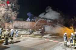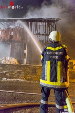 PURK (NÖ): In den Abendstunden des 16. Februar 2015 brach auf einem landwirtschaftlichen Anwesen in Purk aus noch unbekannter Ursache ein Feuer aus. Ein Wirtschaftstrakt wurde dabei ein Raub der Flammen.