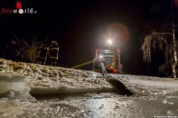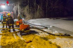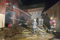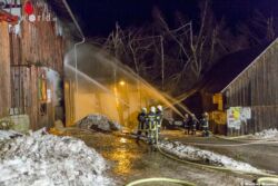 Der Stall, in dem sich weitere Tiere befanden, wurde mittels Druckbelüftungsgerät rauchfrei gemacht. Der ortsansässige Tierarzt wurde verständigt, um den Zustand der Rinder einzuschätzen. Erschwert wurde die Arbeit der Einsatzkräfte durch die winterlichen Verhältnisse. Einerseits musste bei der Anfahrt ein hängen gebliebener Pkw von einem Feuerwehrfahrzeug aus dem Graben gezogen werden, andererseits war der Einsatz der Tragkraftspritzen erst möglich, nachdem die 20 cm dicke Eisschicht auf dem Löschteich mit Motorkettensägen geöffnet worden war.