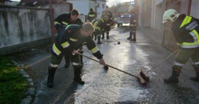 Der Stall, in dem sich weitere Tiere befanden, wurde mittels Druckbelüftungsgerät rauchfrei gemacht. Der ortsansässige Tierarzt wurde verständigt, um den Zustand der Rinder einzuschätzen. Erschwert wurde die Arbeit der Einsatzkräfte durch die winterlichen Verhältnisse. Einerseits musste bei der Anfahrt ein hängen gebliebener Pkw von einem Feuerwehrfahrzeug aus dem Graben gezogen werden, andererseits war der Einsatz der Tragkraftspritzen erst möglich, nachdem die 20 cm dicke Eisschicht auf dem Löschteich mit Motorkettensägen geöffnet worden war.