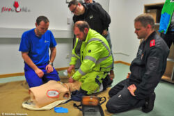 Da die Freiwillige Feuerwehr Wiener Neudorf auch über mehrere Defibrillatoren verfügt, wurde auch die Reanimation beim Vorhandensein eines solchen Gerätes für die Teilnehmer an einer Übungspuppe trainiert.