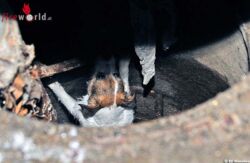 Da der kleine Hund nur 15 Zentimeter hoch ist, konnte er problemlos darunter kriechen. Dabei fiel er bei seiner Exkursion etwa 1,50 Meter nach unten in den geöffneten Schacht. Die Einsatzkräfte mussten den Baucontainer mit speziellen, sogenannten Zahnstangenwinden anheben und sichern.