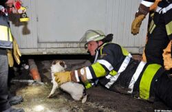 D: Hund unter einem Baucontainer in ein Loch gefallen