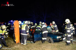 Kurz nach Eintreffen des technischen Zuges der Hauptfeuerwache wurde folgende Lage vorgefunden: Ein Pkw war von der Fahrbahn abgekommen, hatte sich überschlagen und kam auf den Rädern wieder zu stehen. Eine Person wurde schwerst im Fahrzeug zwischen den vordern Sitzen eingeklemmt. Sofort wurden gemeinsam mit der FF Vassach mehre hydraulische Rettungsätze in Stellung gebracht. Der Einsatzbereich wurde ausgeleuchtet und ein umfassender Brandschutz aufgebaut. Nach kurzer Absprache mit dem Notarzt wurde von zwei Seiten parallel begonnen, die Person aus der misslichen Lage zu befreien.