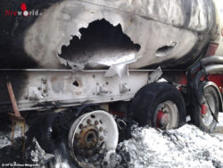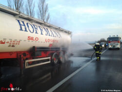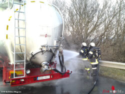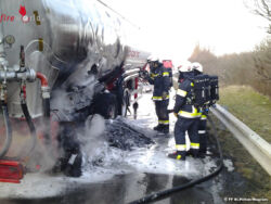 ST. PÖLTEN (NÖ): Einen herausfordernden Einsatz hatten die Einsatzkräfte der Feuerwehren St. Pölten-Wagram und St. Pölten-Stadt am Samstagnachmittag, 21. Februar 2015, abzuarbeiten: Auf der S33 war es bei einem Sattelauflieger zu einem Reifenbrand gekommen, der auf den Tanksilo übergriff.