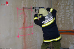 ENGERWITZDORF (OÖ): Am Samstag, den 21.02.2015, wurde die Möglichkeit für Feuerwehrübungen in der ehemaligen Solartechnikfirma MEA in Engerwitzdorf auch vom Sprengstützpunkt der Feuerwehr im Bezirk Urfahr-Umgebung wahrgenommen. Im alten Bürogebäude wurden Rettungs- und Bergeöffnungen zur Menschenrettung gesprengt.