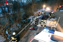 Die anrückenden Feuerwehren sicherten die Unfallstelle großräumig ab, errichteten Straßensperren, leuchteten die Schadensstelle großräumig aus und errichteten einen mehrfachen Brandschutz. Abschnittsfeuerwehrarzt priorisierte die Versorgung der verletzten Personen und sorgte gemeinsam mit dem Roten Kreuz und Feuerwehrsanitätern für eine ordnungsgemäße Triage. Zur wetterunabhängigen Versorgung der Dutzenden Verletzten errichtete die FF Lengdorf ein Sanitätszelt auf der Landesstraße.