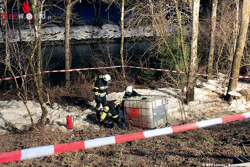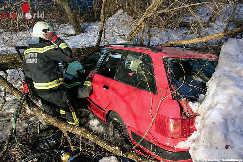 Die Feuerwehren St. Martin, Stein an der Enns und Gröbming begannen unterdessen mit der Menschenrettung der eingeklemmten Personen. Nachdem die verunfallten Fahrzeuge gegen abrutschen gesichert und mittels Motorsägen von Bäumen und Geäst befreit wurden, konnten die Rettungstrupps mit hydraulischem Rettungsgerät mit der Personenbefreiung starten. Parallel dazu wurden die eingeklemmten Insassen von Sanitätern stabilisiert und erstversorgt. Die FF Niederöblarn sperrte den Gefahrenbereich ab und dichtete den Gefahrgutbehälter unter schwerem Atemschutz ab. Der abgedichtete Behäter wurde – wie die Unfallwracks auch – vom WLF-K Gröbming geborgen und abtransportiert.