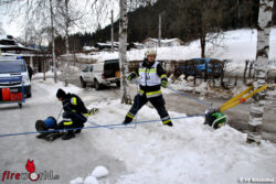 Der Samstagnachmittag stand im Zeichen einer Einsatzübung. Mehrere Personen waren in mehreren Stellen der Eisfläche eingebrochen. Die Feuerwehr versuchte mit Leinen und Schläuchen, die ersten Personen aus dem Wasser zu ziehen. Weiters kamen Steck-und Schiebeleitern zum Einsatz, um die Opfer sicher an den Uferbereich zu bringen.