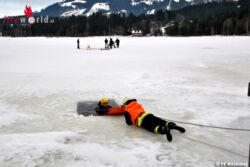 KITZBÜHEL (TIROL): Zum zweiten Mal fand am Samstag, den 22.02.2015, eine Eisretterübung am Schwarzsee statt. Bereits am Mittwoch, 19.2., bekam die Feuerwehr Kitzbühel durch Einsatzstellenleiter Reinhard Hlebetz eine Einführung und eine Schulung.