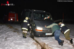 BAD LEONFELDEN (OÖ): Sonntagnacht, 22. Februar 2015, wurde die Freiwillige Feuerwehr Stiftung kurz vor Mitternacht zu einer Fahrzeugbergung alarmiert. Ein tschechischer Lenker ist mit seinem Kastenwagen auf der Leonfeldner Straße (B126) von der Straße abgekommen und über eine Böschung gestürzt.
