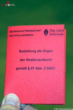Der Bezirkshauptmann berichtete in seiner Rede vom blühenden Veranstaltungsleben in unserem Bezirk und betonte die Wichtigkeit der Verkehrsregelung. Er gibt den Kameradinnen und Kameraden sein Vertrauen, dass sie die mit dem Ausweis verbundenen Rechte und Pflichten ernst nehmen und korrekt umsetzen werden.