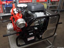 Die alte Tragkraftspritze, eine Rosenbauer VW 75 – Baujahr 1966 – wurde gegen eine neue „TS8 Tsunami“ der Firma Rumpold ausgetauscht. Nach einigen kurzen Grußworten konnten sich die Kameradinnen und Kameraden ein Bild der neuen Tragkraftspritze machen.