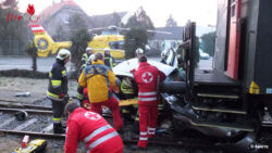 Nö: Eingeklemmter Lenker nach Kollision zwischen Pkw und Zug in Bruck an der Leitha
