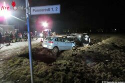 Oö: Zwei Pkw landen nach einem Unfall im Acker