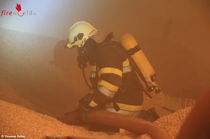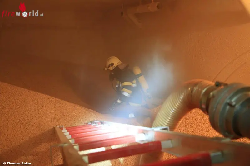 "Um an den Brandherd gelangen zu können, müssten die 12 Tonnen Pellets unter schwerem Atemschutz abgesaugt und gelöscht werden", schildert Einsatzleiter Oberbrandinspektor Werner Holzer. Durch das rasche Handeln konnten die vier Feuerwehren einen größeren Brand verhindern.