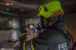AUGSBURG (BAYERN): Gegen 12:15 Uhr wurde die Berufsfeuerwehr Augsburg am 1. März 2015 zu einem Küchenbrand in die Matthias-Claudius-Straße gerufen. Beim Eintreffen der Berufsfeuerwehr Augsburg drang dichter Brandrauch aus einem Appartement im 2. Obergeschoß.